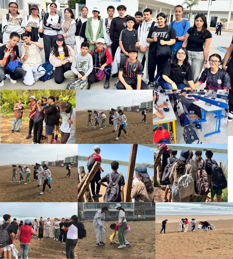 We, then, organized a trip to Mehdia Beach in Kénitra to collect garbage, clean up trash and help keep the ocean safe for animals. We also explored the Sidi Boughaba Natural Reserve, where the students learned how to protect water and wildlife.